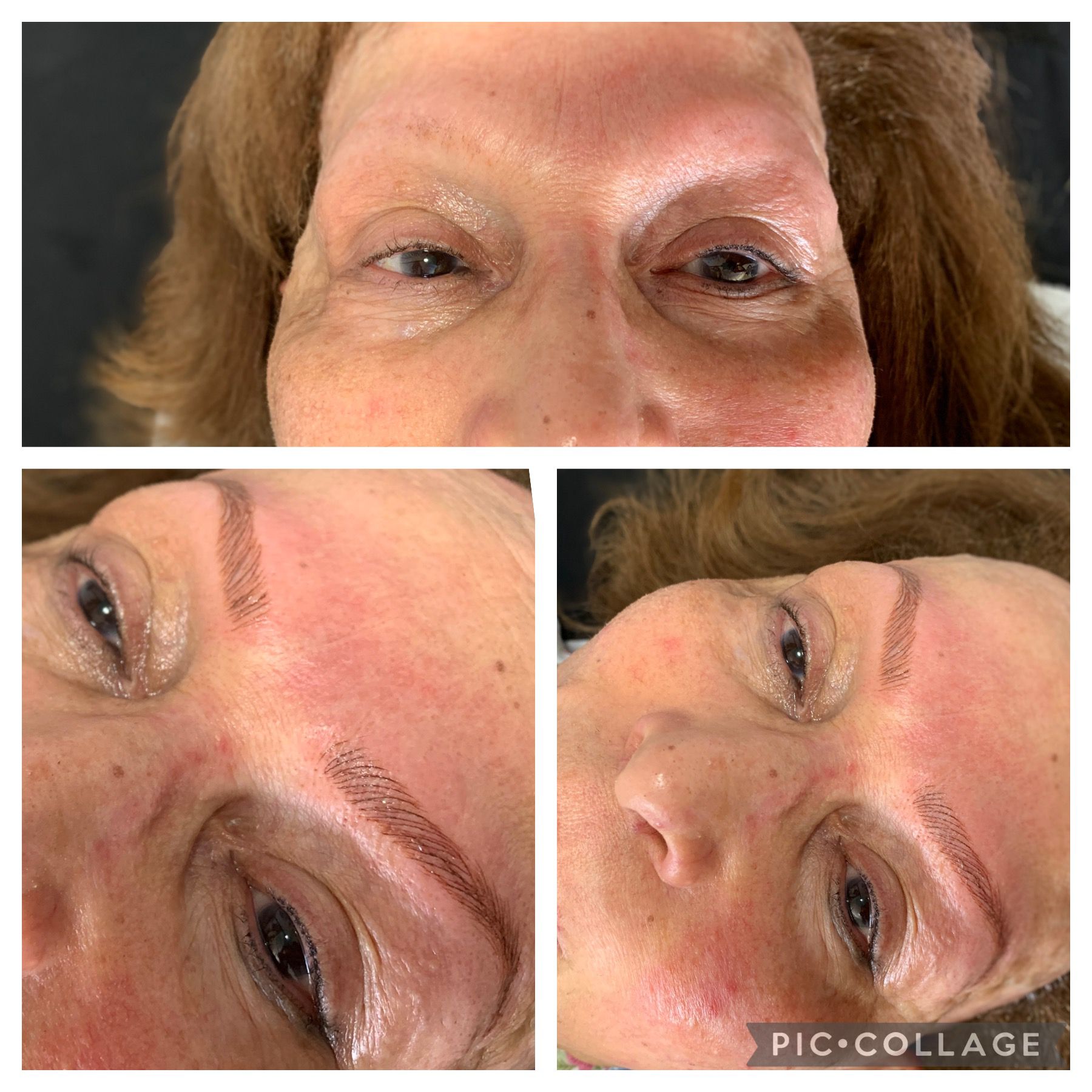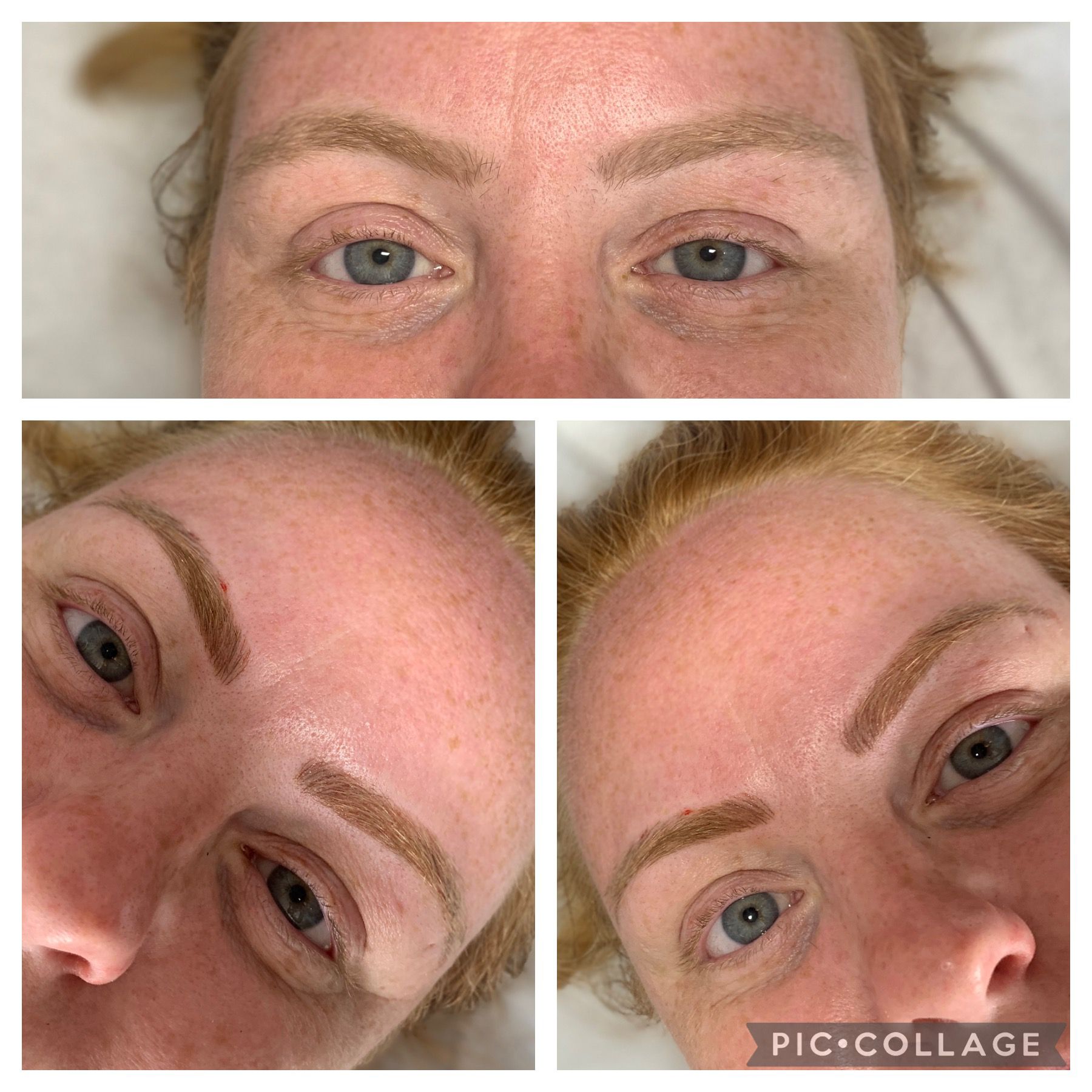 Manual microblading is a process that involves tiny, fine-point needles (instead of a tattoo gun) that make up a small disposable blade to scratch and deposit pigment simultaneously under your skin. This results in natural, realistic-looking brow hairs that don’t wash off.